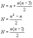 Generalizando, encontramos o número de retas que se podem traçar para n pontos, basta somar ''n'' ao número de diagonais de um polígono de "n" vértices ou "n" lados.
