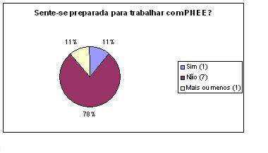 O primeiro questionamento deste eixo aborda se os professores sentem-se preparados para trabalhar com as crianças PNEE, 78% dos entrevistados relatam não estar preparados para este trabalho como mostra o gráfico 4, mas mesmo com o despreparo contam com alunos especiais em suas turmas visto ser uma exigência da legislação. Nesta questão voltamos a salientar a importância da qualificação dos educadores para o atendimento desta demanda de alunos, consideramos que para um ensino de qualidade é necessário uma formação adequada que atenda a todos sem distinção.