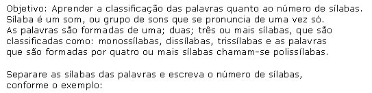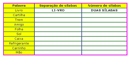 Como referenciar: "Atividade - Trabalhando com sílabas (3ª série) " em Só Pedagogia. Virtuous Tecnologia da Informação, 2008-2025. Consultado em 07/10/2025 às 09:44. Disponível na Internet em http://www.pedagogia.com.br/atividade.php?id=96